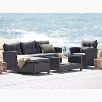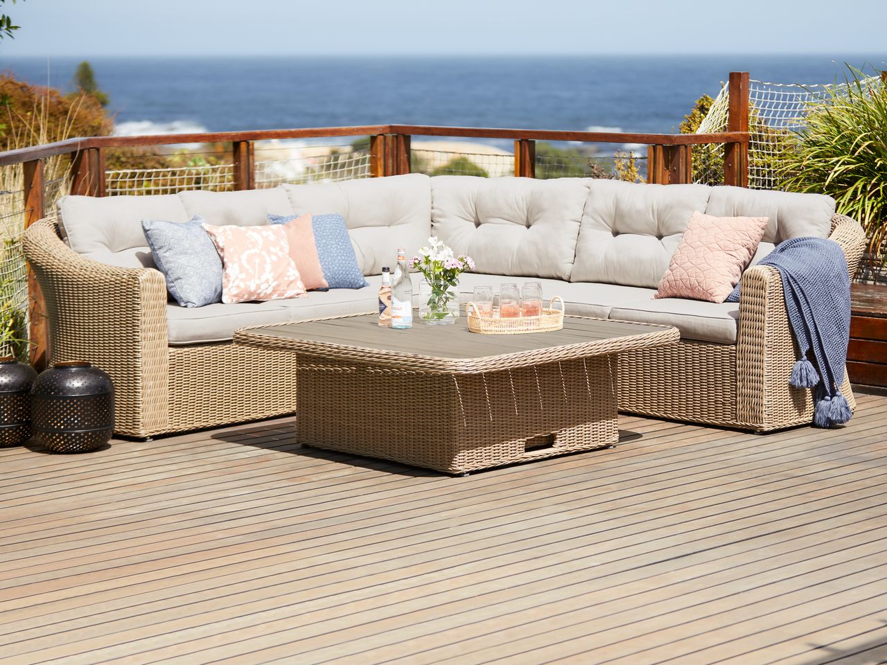 Vsaka vrtna garnitura vključuje vzdržljive blazine s trpežnimi prevlekami, zaradi katerih je pohištvo mehko in udobno za sedenje ter je vodoodporno in ne potrebuje posebnega vzdrževanja. . Vrtna miza je osrednji kos vrtnega pohištva, ko se zunaj zbere družina za skupni obrok ali druženje s prijatelji.